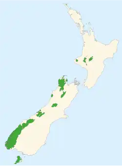 Le ministère de la Conservation est chargé de l'administration des parcs nationaux de la Nouvelle-Zélande. La Nouvelle-Zélande possède quatorze parcs nationaux (recouvrant environ 25 000 km²), vingt parcs forestiers (18 000 km²), environ 3 500 réserves recouvrant 15 000 km², et environ 610 km² de terres privées protégées.