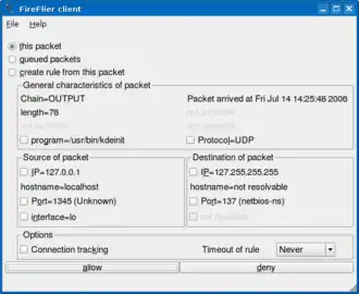 Une autre distinction avec les boîtiers/logiciels pare-feu conventionnels est que les pare-feu personnels sont capables de contrôler les communications en utilisant des méthodes interactives avec l'utilisateur. Certains pare-feu personnels demandent ainsi, à chaque nouvelle tentative de connexion, si celle-ci est légitime. Ceux-ci enregistrent la réponse, ce qui leur permet de déterminer quel trafic l'utilisateur veut autoriser, et quel est celui qu'il veut bloquer.