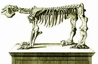 - ↑ Georges Cuvier, « Notice sur le squelette d’une très-grande espèce de quadrupède inconnue jusqu’à présent, trouvé au Paraguay, et Déposé au Cabinet d’Histoire naturelle de Madrid », Magasin Encyclopedique, vol. 1, no. 3 (“L’an quatrième”, 1796), pp. 303-310.