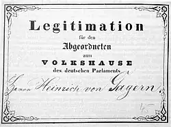 - ↑ Jochen Lengemann: Das Deutsche Parlament (Erfurter Unionsparlament) von 1850. Ein Handbuch: Mitglieder, Amtsträger, Lebensdaten, Fraktionen. Urban & Fischer, München/Jena 2000, S. 17.
