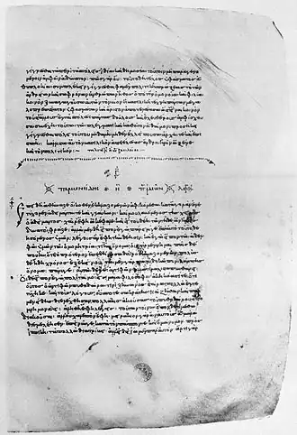Début du Parménide (fac-similé du Codex Oxoniensis Clarkianus 39 de la Bibliothèque Bodléienne).