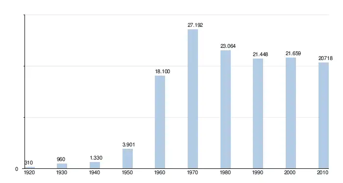 Sa population était estimée à 20 718 habitants lors du recensement de 2010, ce qui donne une densité de 1 991,8 hab/km2.