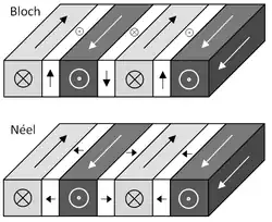 Pour des couches plus épaisses ou des matériaux massifs, les parois de Bloch sont énergétiquement plus favorisées que les parois de Néel.