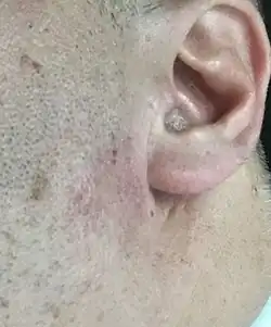 Elle est aussi associée à une perte de sensibilité de la joue et du pavillon de l'oreille qui est normale et s'atténue avec le temps. Elle est due à la nécessité d'exérèse du nerf grand auriculaire, qui peut rarement être conservé dans ce genre de chirurgie du fait de son trajet.