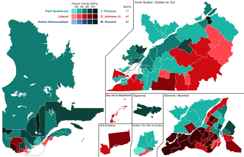 Puis, quelques semaines plus tard, le Parti Québécois est porté au pouvoir à l’issue de l’élection générale du 12 septembre 1994. Bien qu’il n’ait obtenu que 44,75% des voix (contre 44,4% des voix pour le Parti libéral mené par Daniel Johnson), le nouveau gouvernement péquiste est majoritaire. Le nouveau premier ministre, Jacques Parizeau, annonce peu de temps après son élection qu'il a l'intention de déclencher un référendum sur la question de la souveraineté du Québec. En prévision de ce grand plébiscite, il met sur pied des commissions régionales sur l’avenir du Québec visant à sonder l’opinion de la population sur la question[2].