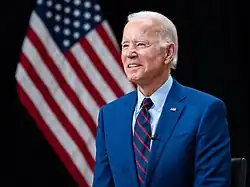 Le Parti démocrate est issu de la scission du Parti républicain-démocrate fondé par Thomas Jefferson en 1792[17]. Doyen des partis américains et mondiaux, il est à l'origine un parti anti-fédéraliste défendant la liberté des États face au pouvoir fédéral, et celle des propriétaires individuels face aux intérêts bancaires et industriels. À l'époque de la guerre de Sécession, il défend également l'esclavage face au Parti républicain de Lincoln, abolitionniste. Il évolue nationalement vers une vision moins conservatrice[18] et moins méfiante du pouvoir fédéral dès les années 1890, et plus nettement dans les années 1930 avec le président Franklin Delano Roosevelt, en valorisant le rôle de l'État dans la protection des minorités. Dans les années 1960 et 1970, il s'inscrit plus à gauche sous l'impulsion des sénateurs Hubert Humphrey, George McGovern ou Edward Moore Kennedy, puis se replace vers le centre sous les mandats de Jimmy Carter et Bill Clinton avant de se réorienter vers la gauche sous la présidence de Barack Obama avec l'influence de Bernie Sanders, Elizabeth Warren, Jesse Jackson, Keith Ellison et Nancy Pelosi. Le 46e président des États-Unis Joe Biden, élu en 2020, et sa vice-présidente Kamala Harris, première femme à occuper cette fonction, sont issus du parti démocrate.