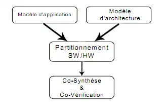La coconception logicielle/matérielle de systèmes embarqués peut être le plus simplement représentée par un diagramme classique en Y :