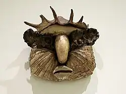 - Le Faune, masque aux yeux triangulaires, casque cornu et coquillage divers, 28 cm[13]
