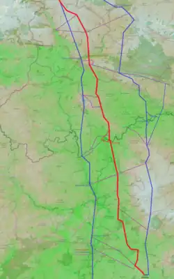 Enfin, une voie est-ouest, sur une ligne Avranches-Domfront-Bagnoles, permettant de rejoindre la côte devait également traverser la région par les crètes, évitant ainsi les landes et marais nombreux dans cette région[43].