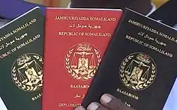 - Passeport régulier (couverture noire) : délivré aux citoyens du Somaliland.