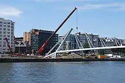 La construction de la passerelle débute en et devait s'achever à l'automne 2015[1] mais des problèmes techniques ont prolongé les travaux jusqu'à la fin d'.