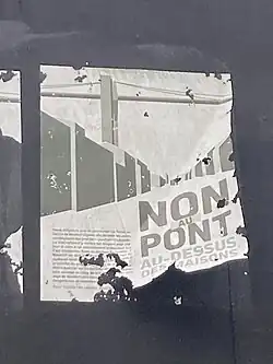 Le projet fait l'objet depuis 2007 d'une contestation d'un certain nombre de riverains de Neudorf, et dans une moindre mesure, d'habitants du Cents et de Weimershof, organisés en un syndicat d'Intérêts locaux. Ceux-ci ont au fil des années déposé plusieurs recours et pétitions, dont un recours devant le Tribunal administratif en mai 2023 soulignant le potentiel impact environnemental du projet, notamment l'abbatage de plusieurs arbres[14]. En 2015, Roger Braun, président du syndicat, critique déjà la seconde version de la passerelle qui est alors présentée, affirmant que "pas une seule personne à Neudorf ne veut de ce pont"[6]. Près de dix ans plus tard, il exprime de plus la crainte que le projet ne "défigure" le quartier et mène à une dévalorisation des habitations[14].