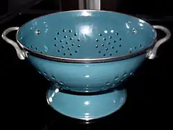 Passoire métallique émaillée.- Passoire en acier inoxydable.