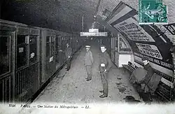 Initialement, elle est à la croisée d'une ligne de la Compagnie du chemin de fer métropolitain de Paris (CMP) et d'une ligne de la Société du chemin de fer électrique souterrain Nord-Sud de Paris, le Nord-Sud, ce qui explique la cohabitation des deux styles.