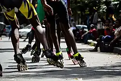 Une course de patins à roulettes.