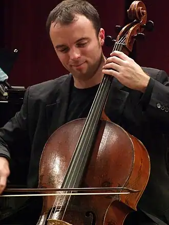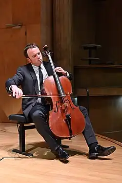 Il joue également un arpeggione de Guy Coquoz & Carolline Thouan, 2012 (copie de l’arpeggione du Musikinstrumenten-Museum de Berlin)