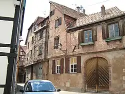 Cette ancienne maison juive fut peut-être construite en 1627-1628 car elle porte l'inscription de la date hébraïque de l'an 5388. Sa lecture est cependant difficile. La maison se situe à la jonction de la rue du Magasin et de la rue du Vieil-Hospice dont elle porte le no 1. Son pignon est en direction de la rue du Canal. Le rez-de-chaussée et l'étage (avec un léger encorbellement) sont en colombage sans décor particulier[20].