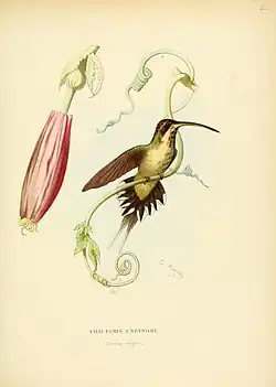 - ↑ Étienne Mulsant et Édouard Verreaux (1861), Histoire naturelle des oiseaux-mouches, ou, Colibris constituant la famille des trochilidés [supplément], Lyon, Au Bureau de la Société Linnéenne, 1877.