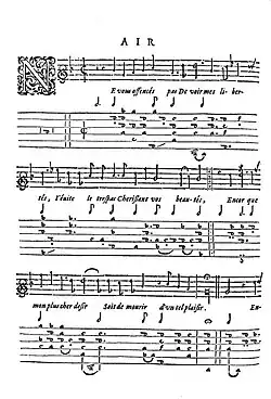 - ↑ Ce que font également Gabriel Bataille et Antoine Boësset, déjà pourvus d'offices dans la musique du roi, quant à eux.