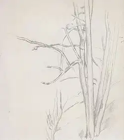 Cézanne vend le Jas-de-Bouffan après le décès de sa mère en 1897, pour ce faire Hortense renonce à son hypothèque légale sur le Jas-de Bouffan[46]. Il aménage en 1900 dans sa maison d'Aix-en-Provence et se fait construire en 1901-1902 son atelier des Lauves au nord d'Aix, sur un terrain de 7000 m², où il travaille tous les matins de 1902 à sa disparition en 1906. Il apprend la mort de Zola le . La collection de Zola passe en vente, le critique Henri Rochefort se déchaîne contre l'artiste dans un article « L'amour du laid »[47].