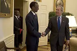 Paul Kagame (/pɔl ka.ga.me/[N 3], en anglais : /pɔːl kə.ˈɡɑː.meɪ/[N 4]), né le à Ruhango (province du Sud, Rwanda), est un homme d'État rwandais, président de la République depuis le , après avoir été vice-président et ministre de la Défense de 1994 à 2000. Il est également président de l'Union africaine de 2018 à 2019.