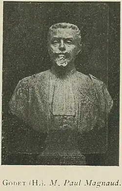 - 1903 : Paul Magnaud, buste en marbre[14] par le sculpteur Henri Godet, exposé au Salon des artistes français de Paris en mai 1903 (n° 2805 du catalogue de l'exposition) et offert par souscription au magistrat en [15],[16]. Localisation actuelle inconnue[17].