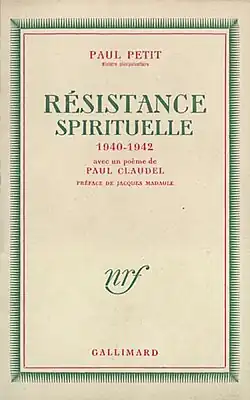 La principale œuvre de Paul Petit, Résistance spirituelle, paraît à titre posthume en 1947, chez Gallimard, avec une préface de Jacques Madaule et un poème de Paul Claudel. Pour l’historienne Renée Bédarida, Paul Petit était « un esprit intransigeant au courage indomptable »[6]. Bernard Comte le présente comme « un témoin intransigeant de la transcendance et de l’exigence éthique du message chrétien », remarquant : « il défie presque ouvertement l’occupant et ses complices[10]. »