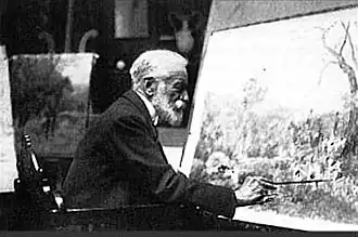 - ↑ Le Livre d'or des peintres exposants..., 1907, p. 567« Parmi ses principaux envois aux Salons de la Société des Artistes Français, nous retiendrons : Chasse à Courre, qui, au Salon de 1883, valait une 3e médaille à l'artiste et représentait le talent du peintre à l'Exposition Universelle de 1900 »