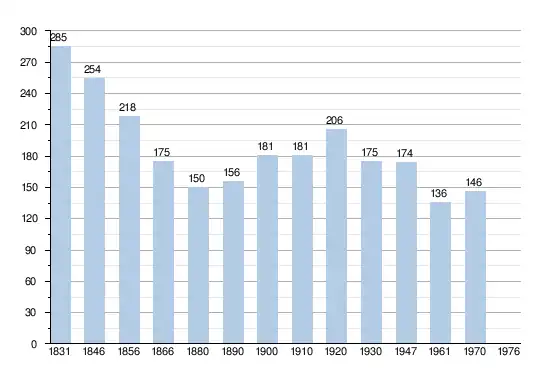 - Sources : INS, Rem. : 1831 jusqu'en 1970 = recensements[3].