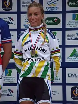 Le , 19 ans après Jeannie Longo, elle devient championne du monde de cyclisme sur route à Ponferrada, en Espagne[40],[41],[42]. En fin de saison, elle termine deuxième du Vélo d'or français entre Jean-Christophe Péraud et le pistard François Pervis[43]. Elle est également élue par la revue américaine VeloNews, « cycliste internationale de l'année »[44] et elle est classée parmi les Français les plus influents dans le monde par le magazine Vanity Fair[45]. Elle est sacrée Championne des championnes françaises par L'Équipe[46].