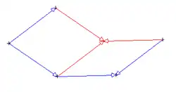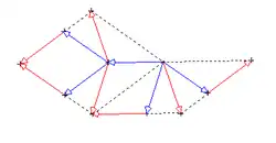 Il est aussi possible de paver le plan à l'aide de deux figures géométriques simples comme les deux losanges suivants. À condition de les assembler en respectant la couleur et le sens des vecteurs. Ces contraintes d'assemblage assurent que le pavage obtenu ne sera pas périodique. Comme précédemment, il existe une infinité de pavages du plan non périodiques à l'aide de ces deux pièces.