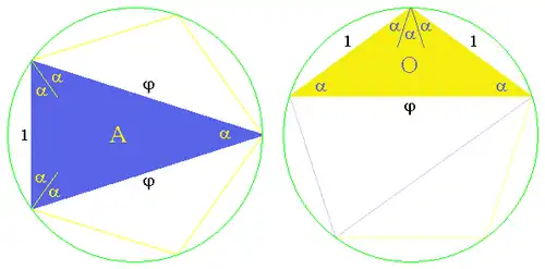 Ces deux types de triangles d'or peuvent s'obtenir en découpant un pentagone régulier :