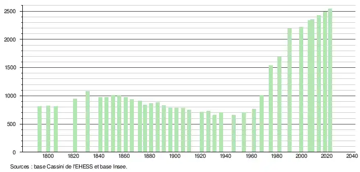 - ↑ Fiches Insee - Populations de référence de la commune pour les années 2006, 2007, 2008, 2009, 2010, 2011, 2012, 2013, 2014, 2015, 2016, 2017, 2018, 2019, 2020, 2021 et 2022.