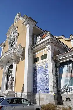 La façade principale présente des panneaux d'azulejos, en bleu et blanc, réalisés en 1922, représentant des scènes de l'histoire du Portugal avec des thèmes dédiés à Sagres, la bataille d'Ourique, l'Ala dos Namorados dans la bataille d'Aljubarrota et la Croix du Sud.