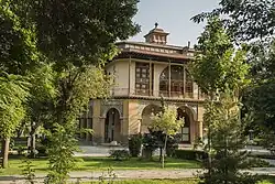 Le corps du palais est composé de deux niveaux d'une superficie totale de 500 m2. Au rez-de-chaussée, une pièce centrale quadrangulaire communique par quatre iwans avec les jardins environnants. Les façades avant et arrière sont formées d'un portique de colonnes en brique réunies par des arcs en plein cintre. À l'étage ce sont trente-deux minces colonnes en bois qui garnissent la façade et forment un balcon portant le toit. Le toit est ceint d'une corniche et recouvert de tôles au design innovant. Il est surmonté d'une tourelle carrée. Au lieu de coins ce sont des murs obliques, de sorte que le plan est celui d'un octogone inégal[2],[3]