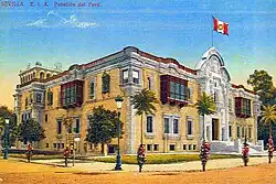 Le pavillon du Pérou a été construit dans le cadre de l'Exposition ibéro-américaine de 1929 qui s'est tenue à Séville [1]. Il a été bâti à partir du projet de l'architecte Manuel Piqueras Cotolí (Lucena 1886- Lima 1937). Le pavillon se conçoit comme une œuvre avec des forts caractères métis et colonial, mélange des racines espagnoles et des cultures préhispaniques péruviennes [2].