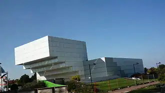 Conçu par l’agence d’architecture Patriarche, l'édifice a la forme d'un monolithe blanc bardé de 3900 triangles métalliques, et dont les façades se soulèvent dans les angles du bâtiment pour dévoiler différents accès vitrés. La toiture est recouverte de 7000 m² de panneaux photovoltaïques.