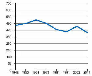 - 1 2 (sr + en) « Livre 20 : Vue d'ensemble comparative de la population en 1948, 1953, 1961, 1971, 1981, 1991, 2002 et 2011, données par localités) » [PDF], pages du recensement de 2011 en Serbie - Institut de statistique de la république de Serbie, (consulté le )