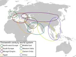 - (en) Janet Abu-Lughod, Before European Hegemony : the world system a.d. 1250–1350., Oxford University Press, New-York, , 464 p. (ISBN 978-0-19-506774-3, lire en ligne)