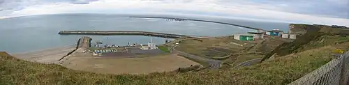 Le littoral est constitué de falaises de craie plus ou moins hautes dont les plus célèbres sont celles d’Étretat. Leur couleur blanche explique la désignation « Côte d'Albâtre » pour cette partie de la Normandie. Cette falaise recule plus ou moins rapidement en fonction de l’érosion marine, ainsi le littoral de la Seine-Maritime recule de vingt centimètres par an en moyenne[36]. Les plages sont tapissées de galets, détachés de la falaise et polis par la mer. Ces galets ont néanmoins tendance à migrer et le sable peut affleurer à certains endroits.