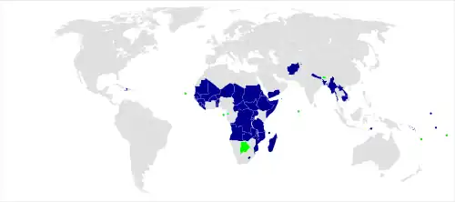 En , la liste des PMA compte 44 pays[8], ici classés par continents (le nombre de pays par continent) :