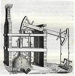 La plupart des nombreux bassins houillers britanniques sont exploités depuis longtemps, le plus important étant celui du Nord-Est, qui ravitaille Londres en charbon par cabotage. C'est là où la transformation du paysage commence, par des installations de surface qui se remarquent, d'abord par les manèges de chevaux actionnant des treuils d'extraction et actionnés par des roues à eau à partir de 1780. En second lieu, tout un système de transports de chemins de roulement en bois se développent comportant des ouvrages d'art, les lignes aboutissaient à des jetées en bois (staithes), d'où la houille tombe dans la cale des navires. Ce réseau se développe au XVIIIe siècle et début du XIXe siècle, et les rails en fonte puis en fer se substituent au bois. Pour l'exhaure, ont utilise des norias entraînés par des manèges ou des roues à eau, et à partir de 1712 dans les Midlands, et 1715 dans le Nord-Est, par les machines de Thomas Newcomen, dont la chambre des machines (engine house), hautes de plus de 10 mètres, qui se multiplient domine littéralement le paysage des bassins et en devient un élément caractéristique[4]. Visibles également les cheminées utilisées pour la ventilation de mines, les hameaux de mineurs autour des puits, les fours à chaux, verreries, avec leurs fours coniques, développés au XVIIe siècle, fours de potiers, salines, toutes industries voraces en énergies se retrouvent aussi dans ces bassins houillers.