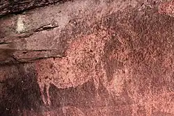 Les personnages représentés sont des humains chassant ou cuisinant et des scènes animalières.