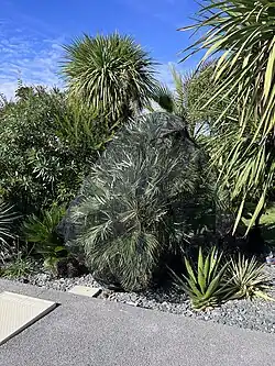 Adaptabilité à différentes espèces et tailles de palmiers. Filet de lutte (type Vigipalm®) installé sur une cépée de Chamaerops humilis, palmier particulièrement ciblé par Paysandisia archon. Les adultes utilisent les composés sémiochimiques pour se retrouver et repérer leurs plantes hôtes dans l'environnement[12]. L'utilisation des odeurs dans la lutte contre le ravageur a fait l'objet de plusieurs études, sans ne donner de résultats probants.