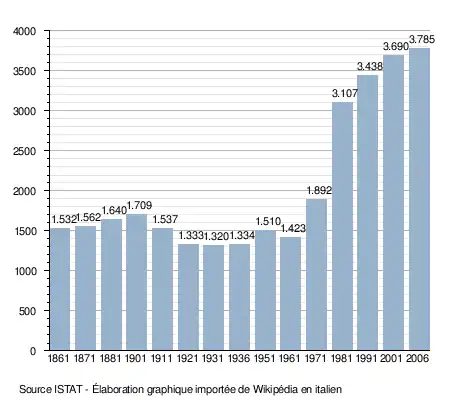- ↑ (it) Popolazione residente e bilancio demografico sur le site de l'ISTAT.