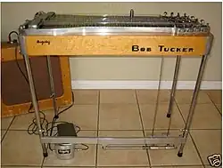 - ↑ Tous les détails de technologie de la pedal steel guitar sont exposés dans le site pedalsteelguitarfrance.