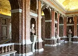Le « marbre feint » est la représentation en peinture des différentes couleurs, veines et autres accidents du marbre[Q 4]. On distingue :