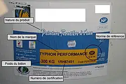 Dans l’exemple ci-contre d’une peinture française à l’eau, on peut connaître certaines des performances du produit au travers de son code de certification. Les autres indicateurs sont donnés dans la fiche-produit.