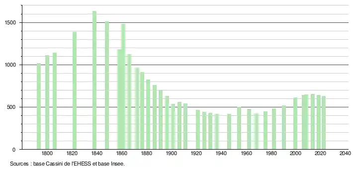 - ↑ Fiches Insee - Populations de référence de la commune pour les années 2006, 2007, 2008, 2009, 2010, 2011, 2012, 2013, 2014, 2015, 2016, 2017, 2018, 2019, 2020, 2021 et 2022.