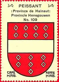 On y fait mention de cette famille, par le recueil historique héraldique belge, de 1366 à 1923 en tant que comte et comtesse dans diverses villes de l'actuelle Belgique et par certains membres, propriétaire de Peissant[16].